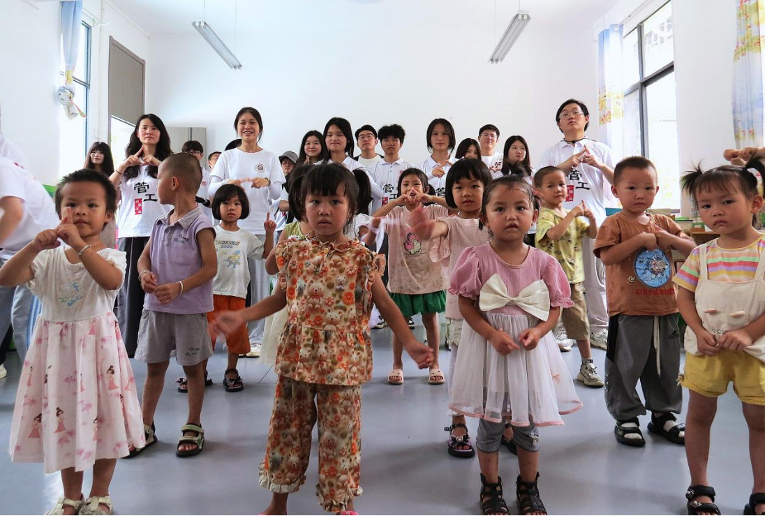为了让小朋友和三下乡成员更深入地感受汉字魅力、增添活动趣味性,实践团成员还带领全体小朋友学习了《中国人中国字》汉字手势舞,用肢体语言生动演绎“中国字”“中国人”等字形,欢笑声回荡全场,在蹦蹦跳跳中感受汉字的韵律。