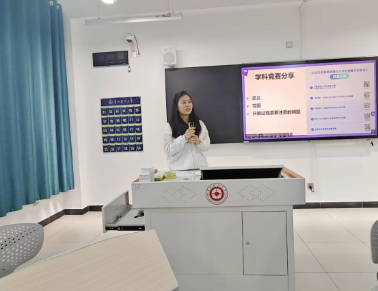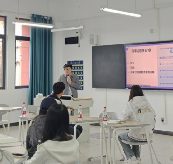 2022级学科竞赛优秀学生代表冉谷萍与王誉锜分别结合个人参赛经验,围绕选题策略、实践技巧与时间管理等方面进行分享,为在场同学提供了切实可行的参考。在互动环节,同学们踊跃提问,围绕竞赛报名流程、跨专业组队、备赛资源获取等问题与老师、学长学姐深入交流,现场气氛热烈。大家纷纷表示,本次分享会干货满满,有效解决了备赛过程中的诸多困惑,为后续参与学科竞赛注入了信心与动力。