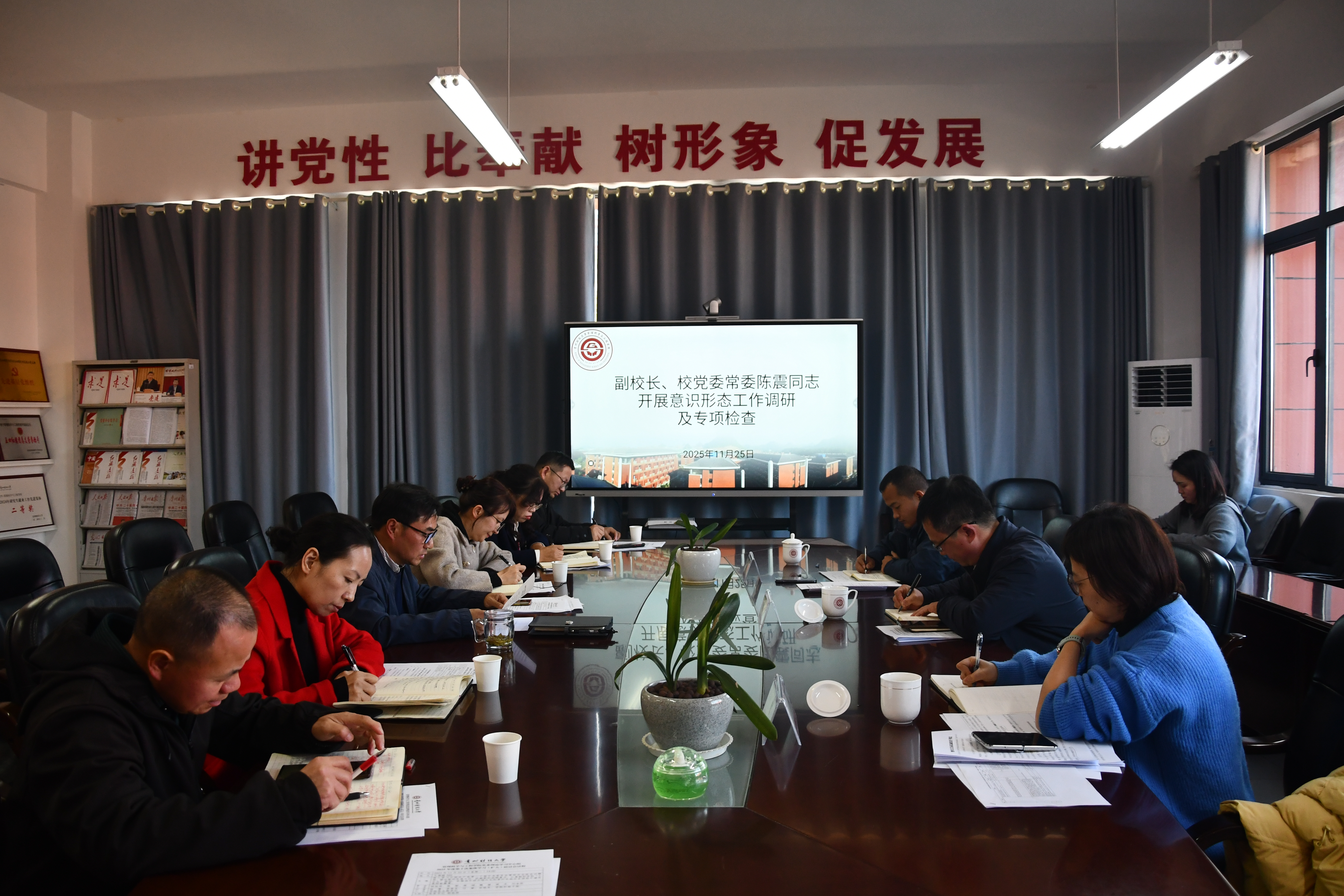 11月25日,管理科学与工程学院党委理论学习中心组2025年度第十次集体学习(扩大)研讨会在文溯楼509会议室召开。参加会议的有学院党委书记胡张林,党委副书记、纪委书记张颖,党委副书记傅璟,副院长魏媛,副院长梁龙、副院长刘金林。学校副校长、党委常委陈震,贵州煤炭经济与管理研究院副院长李恩东,检查组成员付琳、孙晓东参加、学院科级干部以及学院各党支部书记列席会议,会议由胡张林主持。