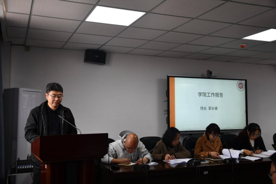 大会在庄严的国歌声中拉开帷幕。院长郭长睿代表学院作2025 年度工作报告,回顾了过去一年学院在党的建设、学院建设、学科建设、人才培养、科学研究、社会服务、文化传承创新、国际交流合作、学生管理、招生就业等方面取得的成果和进步,分析了学院当前存在的问题,并提出2026年学院的主要工作目标与计划。报告指出,2025 年,学院党建工作扎实推进,全面从严治党持续深化;本科教学顺利通过教育部教育教学审核评估,人文地理与城乡规划专业获批省级 “金专” 建设点;科研创新能力稳步提升,获批国家自科基金、教育部人文社科等多项课题,高水平论文与横向课题成果丰硕;人才培养质量持续提高,学生在学科竞赛中斩获国家级金奖、特等奖等多项荣誉;社会服务亮点突出,博士农场、科技小院建设成效显著,助力乡村振兴与地方产业发展。报告同时客观分析了当前学院发展存在的短板与不足,并围绕 “十五五” 开局之年目标,明确了 2026 年党建品牌打造、学科平台建设、教学质量提升、科研突破、就业服务等重点工作方向。