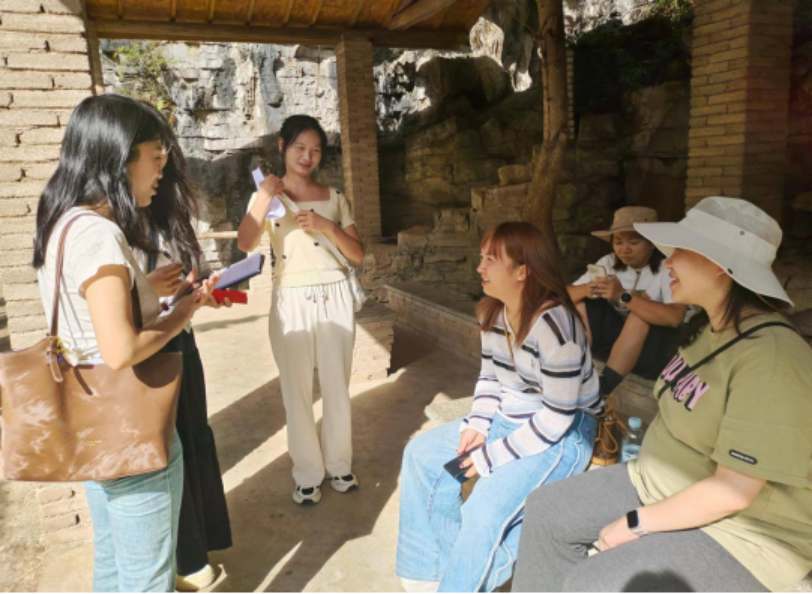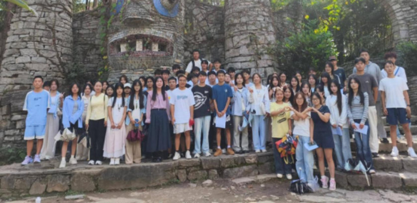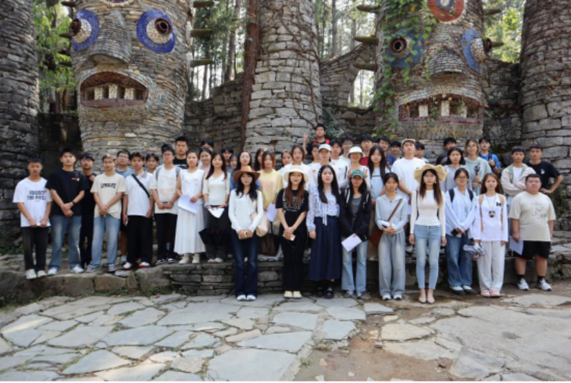 夜郎谷景区作为贵州省知名的文化生态型旅游景区,以独具特色的石雕艺术、民族文化景观及自然生态环境而闻名。近年来,景区通过融入社交媒体传播与“网红打卡”元素,吸引了大量游客,成为贵州文旅融合与乡村产业创新的重要案例。实践当天,学生在指导教师带领下,参观了景区主要景点、了解了景区建设历程、运营模式及农文旅融合机制。通过现场考察,同学们直观感受到乡村旅游发展在带动地方经济、促进农民增收及传播地方文化中的重要作用。