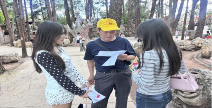 在教师指导下,学生分组在景区内面向游客开展了《网红景区游客消费行为与影响机制》问卷调查。问卷内容涵盖游客的出行动机、社交媒体影响、消费项目、再次到访意愿、行为态度、主观规范及知觉行为控制等方面,同时设置了期望与实际体验对比、开放式改进意见等问题。学生们采用面对面随机抽样的方式,在景区入口、主要打卡点和休息区等地发放问卷,并对部分受访者进行了访谈。通过此次现场数据收集与交流,学生不仅学习了社会调查的规范流程,还体会到在真实环境中组织调研所需的沟通能力与数据质量控制技巧。