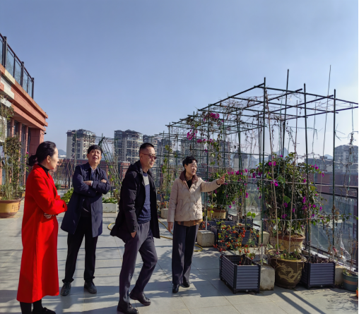 随后,“五老”一行来到学院五楼露台,实地察看了该区域规划与使用情况,对学院办公楼功能优化、文化氛围和舒适环境营造的举措给予了充分肯定。